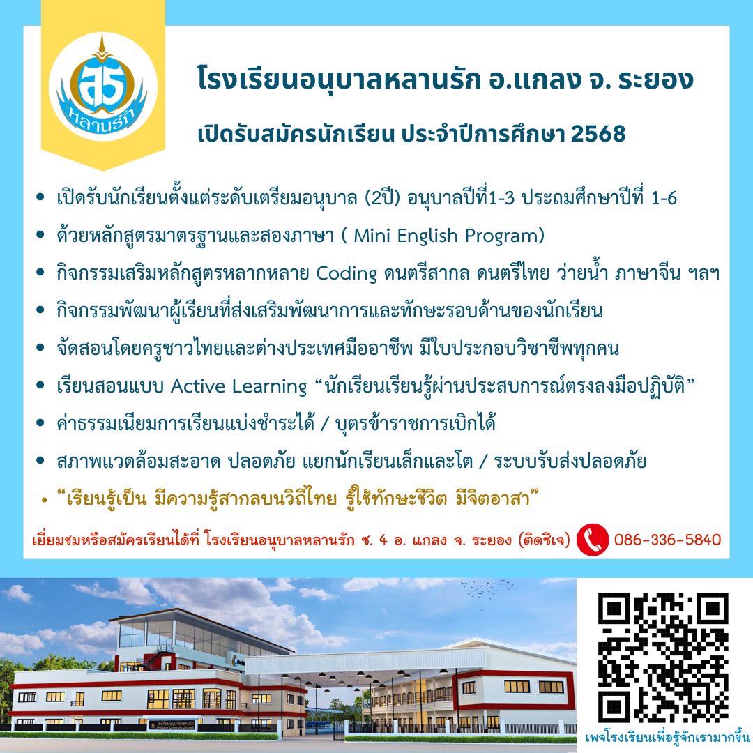 โรงเรียนอนุบาลหลานรัก อ.แกลง จ.ระยอง เปิดรับสมัครครูประจำปีการศึกษา 2568