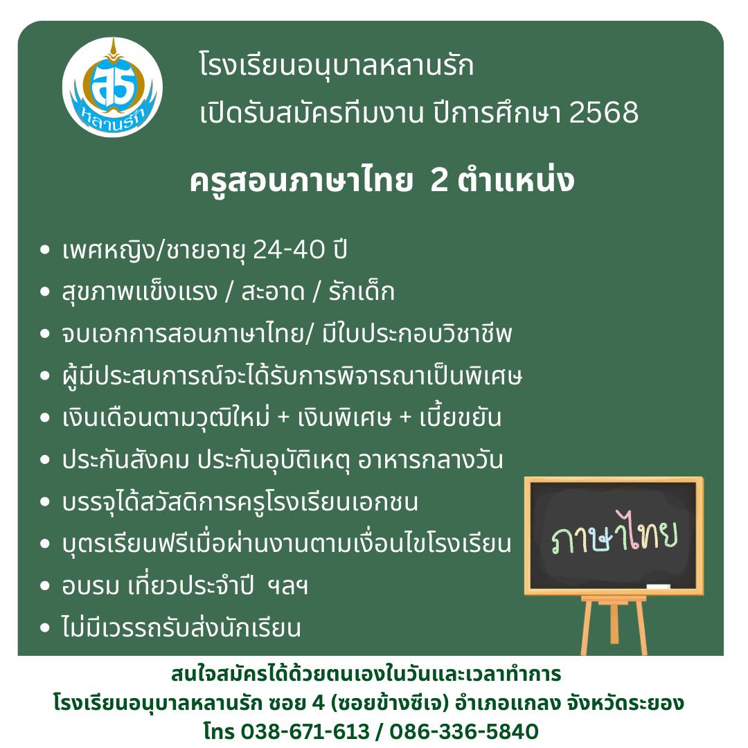 โรงเรียนอนุบาลหลานรัก อ.แกลง จ.ระยอง เปิดรับสมัครครูประจำปีการศึกษา 2568